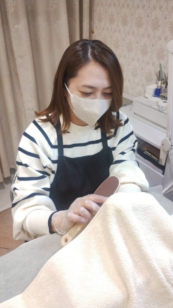 フットケア歴10年以上、資格保有のベテランスタッフが、あなたの足の状態を丁寧に見極め、最適な施術プランを提案します。豊富な経験から、他店で断られたようなお悩みにも対応します。